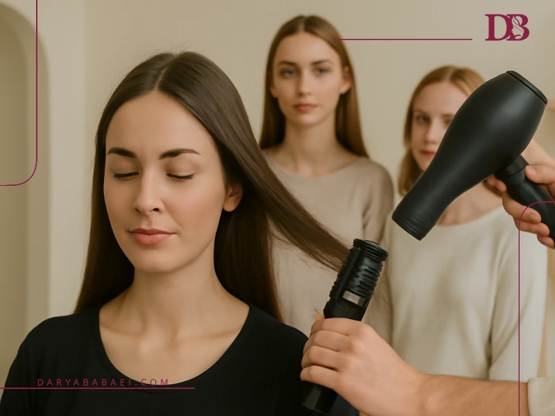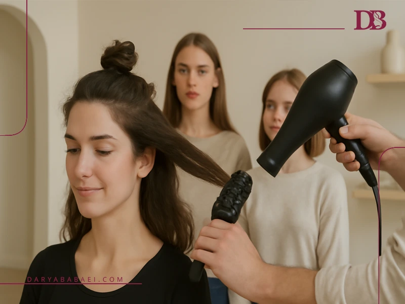 - کنترل حرارت سشوار و محافظت از مو؛ آموزش تنظیم حرارت مناسب و استفاده از محصولات محافظ حرارت.
